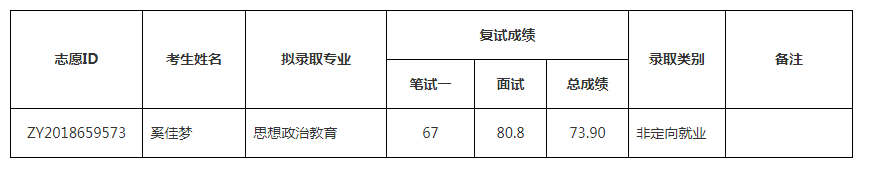 因我院思想政治教育专业拟录取考生史宏月(志愿ID:ZY2018849163)确认放弃拟录取资格,经研究生院审核通过,学院现决定顺次递补拟录取该专业考生奚佳梦(志愿ID:ZY2018659573)。