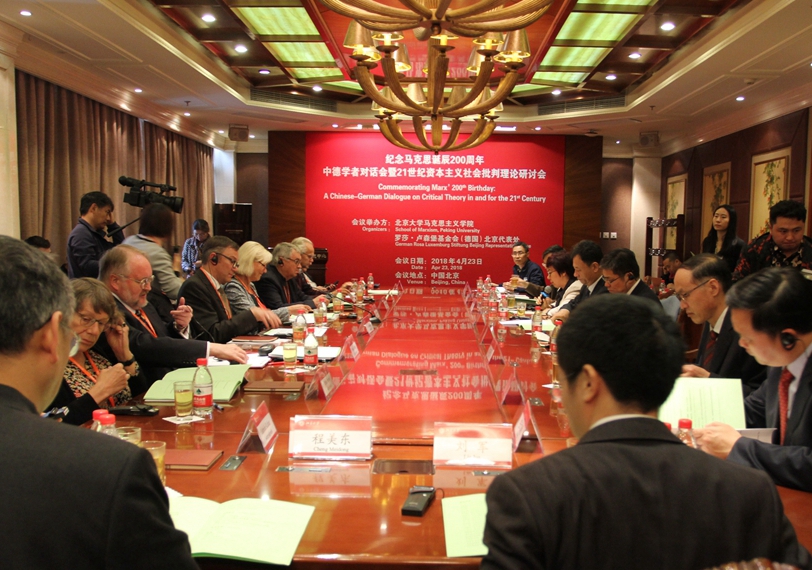 2018年4月23日,北京大学马克思主义学院与德国罗莎·卢森堡基金会联合举办了“纪念马克思诞辰200周年:中德学者对话会暨21世纪资本主义社会批判理论研讨会”。本次研讨会,是在第二届世界马克思主义大会(2018年5月5日至6日在北京大学举办)召开前的一次重量级国际学术研讨会,来自中德两国的40余位专家学者参会。