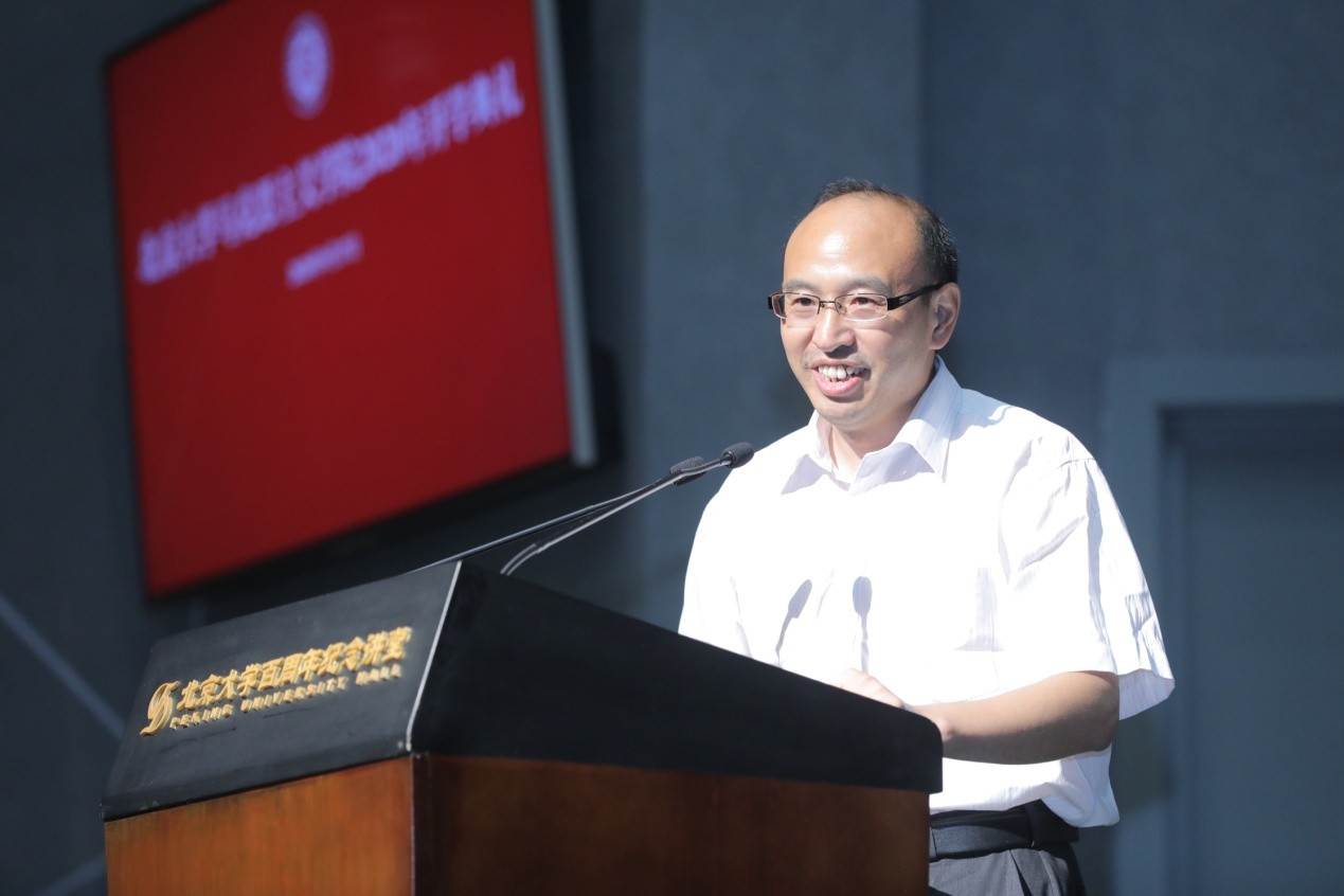 在热烈的掌声中,学院院长仰海峰老师发表讲话。他首先代表学院全体师生对新生同学们加入北大马院大家庭表示热烈的祝贺与欢迎。仰老师指出,北大马克思主义学院是追求真理的学术殿堂,也是师生和谐的温馨家园。他向同学们表达了殷切期望:一是希望同学们以各位师长的品学为对标,努力成为德才兼备的卓越马克思主义理论人才;以马克思为榜样,胸怀崇高理想,勇攀思想高峰。第二,马克思主义博大精深,同学们要沉下心来研读经典文献,真正学深悟透。同时,拓宽视野,广泛涉猎其他哲学社会科学以及自然科学知识,做到融会贯通。第三,培养执着坚毅的品质,练就开阔宁静的心态,坐得住冷板凳,排除干扰,认真学习,专心研究。最后,仰老师号召全院师生共同努力,坚定前行,让北大马克思主义学院“一马当先,马到功成”。