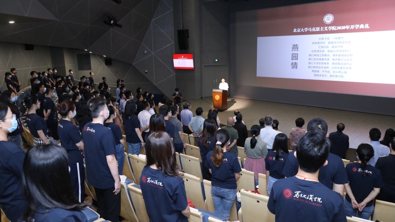 9月17日上午,北京大学马克思主义学院在百周年纪念讲堂李莹厅隆重举行2020年新生开学典礼。学院荣休教师代表祖嘉合教授、学院院长仰海峰教授、学院党委书记孙蚌珠教授以及学院党政班子成员、在岗教师、部分在校生集聚一堂,热烈欢迎学院第二届马克思主义理论专业本科生、第三届大钊班项目本科生和2020级研究生新生。典礼由学院党委副书记李石生老师主持。