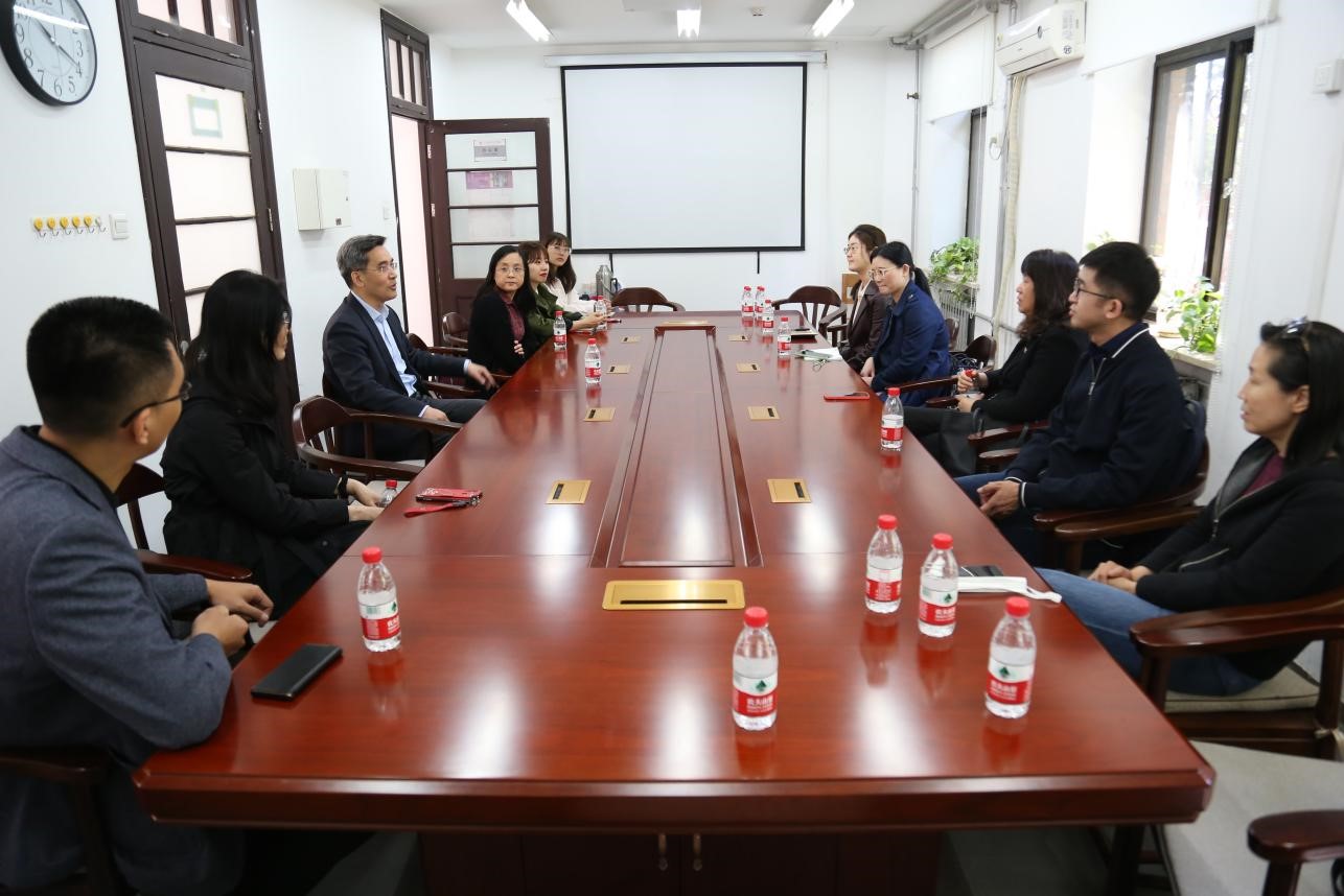 清华大学马克思主义学院院长艾四林对北大马院各位老师的到来表示热烈欢迎,在清华大学马克思主义理论教育与研究成果展览室,老师们认真翻阅了近年来清华马院的各项科研成果并进行了愉快的交流和讨论。