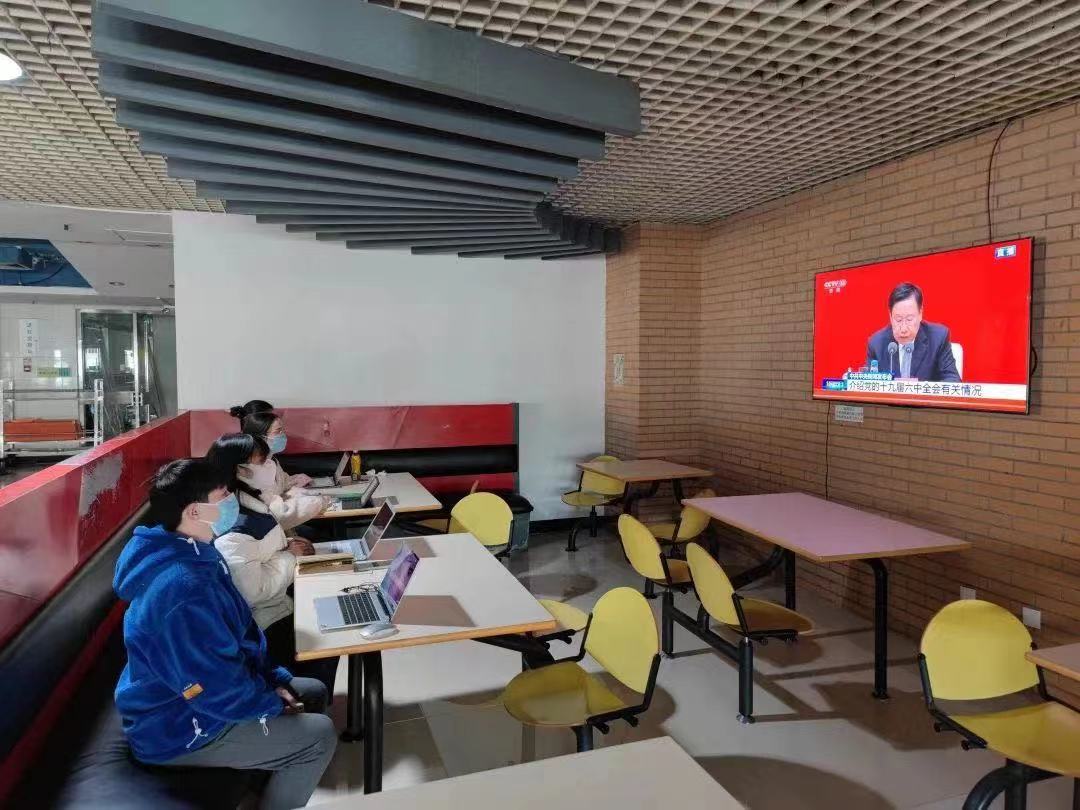 11月8日至11日,中国共产党第十九届中央委员会第六次全体会议在北京隆重召开。此次全会是在我们党百年华诞的重要时刻,在“两个一百年”奋斗目标历史交汇关键节点上召开的一次重要会议。全会圆满完成了各项议程,审议通过了《中共中央关于党的百年奋斗重大成就和历史经验的决议》。为全面学习贯彻十九届六中全会精神,马克思主义学院组织学生以线上和线下结合的方式认真收看全会报道,并组织全体学生骨干线上开展集体学习。