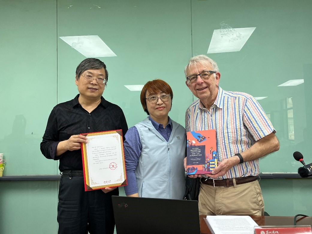 2023年5月下旬,我院邀请英国社会科学院院士、剑桥大学社会学系荣休教授大卫·莱恩(David Lane)来访。莱恩教授于5月24日至26日在我院开设以“资本主义的多种样态(Varieties of Capitalism)”为主题的系列学术讲座。我校300多名本科生和研究生、校外学者与学生共计500余人参与讲座。期间,莱恩教授提出将其新著“Global Neoliberal Capitalism And The Alternatives: From social Democracy To State Capitalisms”捐赠给我院“国际马克思主义文献中心”,我院为莱恩教授颁发了捐赠证书。