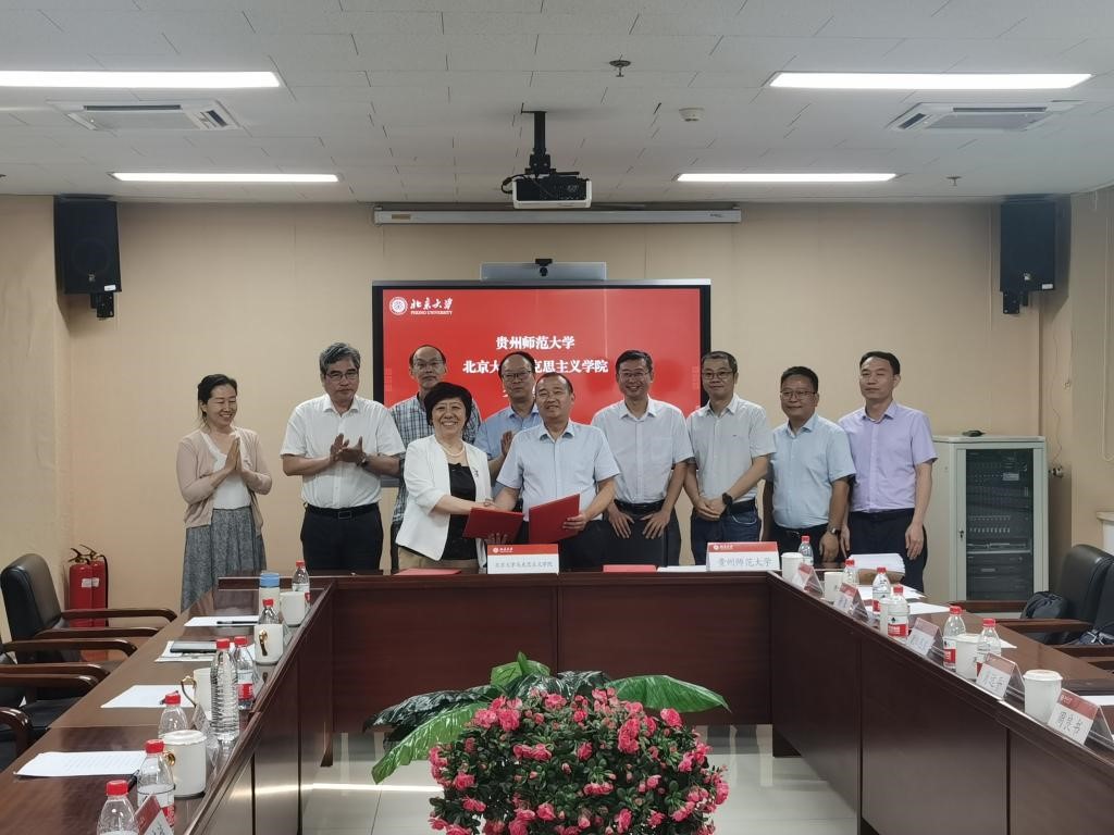 会上,学院党委书记孙蚌珠代表北京大学马克思主义学院与贵州师范大学副校长欧阳恩良签署了合作帮扶协议,初步达成共建中共党史党建研究院意向,北京大学马克思主义学院将从学科专业建设、人才培养、师资队伍建设、学术交流等方面对贵州师范大学马克思主义学院进行全面帮扶。