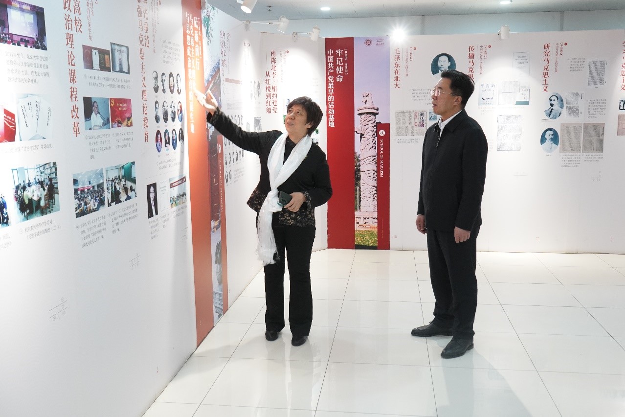 会后,双方合影留念,拉萨市教育局一行参观了“共命运、同前进——北京大学与马克思主义”主题展览,党委书记孙蚌珠做了生动的讲解。