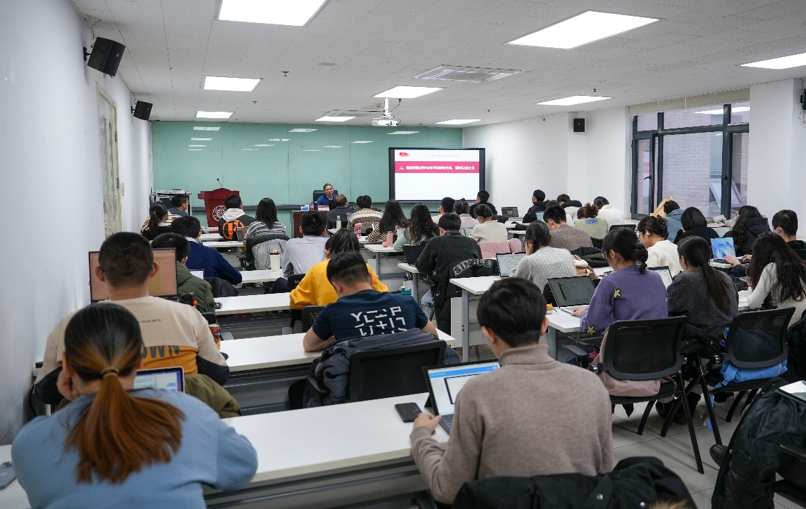 为深入学习习近平新时代中国特色社会主义思想,引导师生以学铸魂,以学增智,以学正风,以学促干,12月8日上午,北京大学马克思主义学院邀请国防大学政治学院教授何怀远少将为学院师生作“习近平强军思想的军事观和方法论”主题讲座。讲座由北京大学马克思主义学院院长仰海峰教授主持,学院60余名师生聆听了讲座。