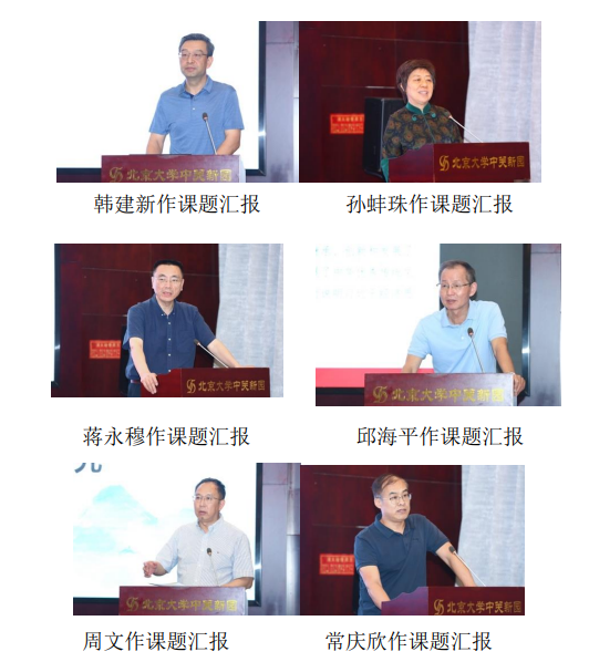 北京城市学院马克思主义学院常务副院长韩建新、北京大学马克思主义学院党委书记孙蚌珠、四川大学马克思主义学院院长蒋永穆、中国人民大学习近平新时代中国特色社会主义思想研究院副院长邱海平、复旦大学马克思主义研究院副院长周文、中国人民大学马克思主义学院常庆欣等首席专家分别就六个重大项目进行课题汇报。