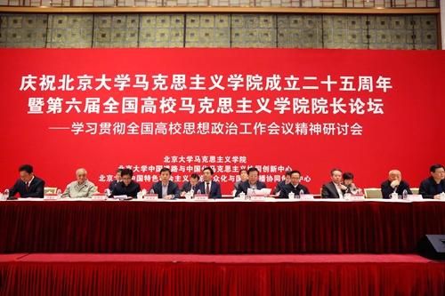 作为北京大学马克思主义学院成立25周年活动的组成部分,第六届全国高校马克思主义学院院长论坛和全国马克思主义青年学者论坛同时举行,论坛的主题是:深入学习和贯彻落实习近平总书记在全国高校思想政治工作会议上的讲话精神和中央31号文件精神,总结经验,分析问题,深化认识,商讨对策,共同推进高校思想政治理论课教学,在改进中提高思想政治理论课教学质量。与会院长和青年学者围绕主题进行了深入的交流和探讨,在很多方面取得了共识。