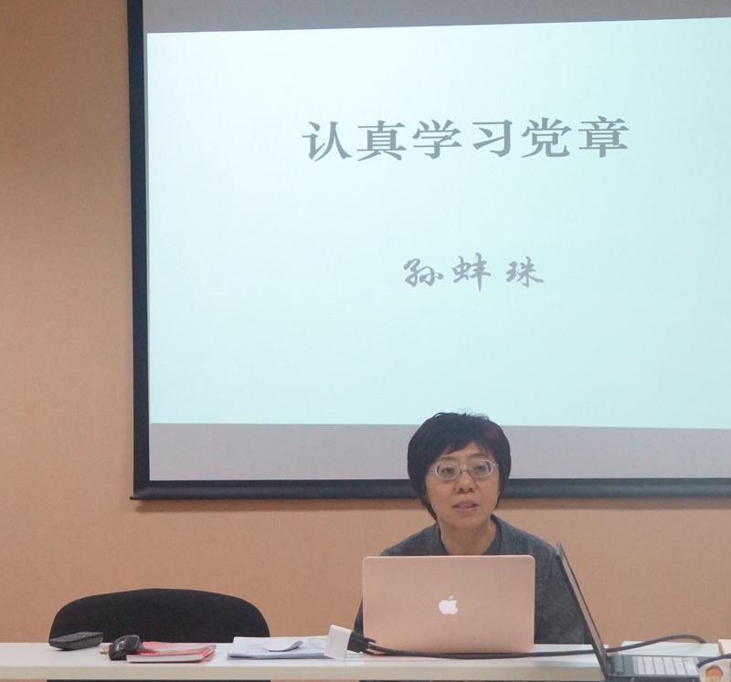 会上,孙蚌珠老师首先从党章的重要地位和历史沿革、十九大对党章的修改、党员的基本条件和如何争取入党三个方面为积极分子们讲授了“认真学习党章,积极创造条件,争取早日加入党组织”的主题党课。